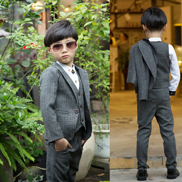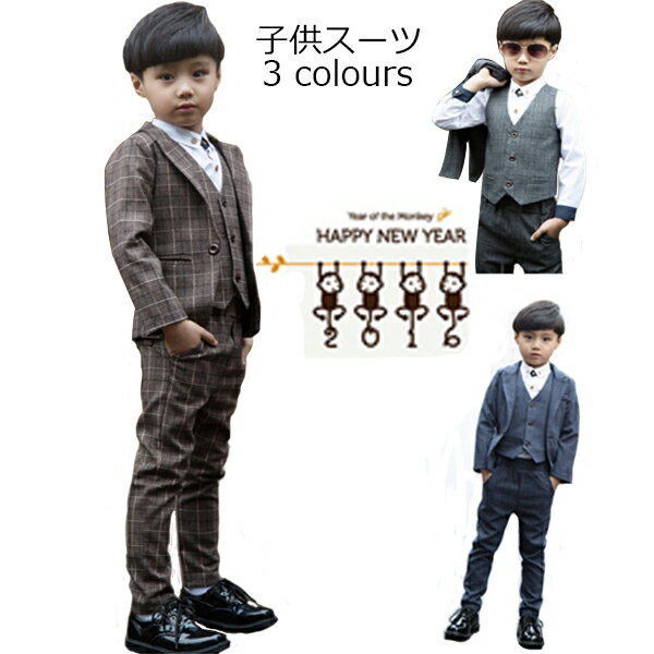 【送料無料】スーツ 男の子 キッズ 4点セット 長袖ジャケットコート 長ズボン ベスト男の子 スーツ 入園式 子供 タキシード/フォーマル 子供服 フォーマル フォーマルスーツ 男の子 子供服 パーティー