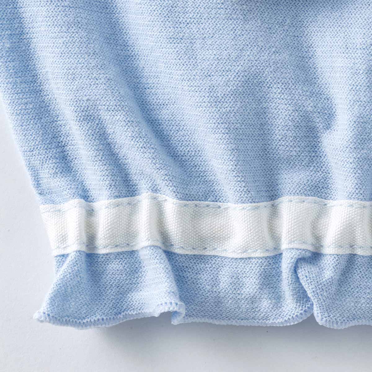 素材綿100%(SZ天竺、フライス)、ウエストリブ/綿97%・ナイロン2%・ポリウレタン1% カラー展開サックス サイズ展開80、90、100、110、120、130 備考パンツはひざ下丈。