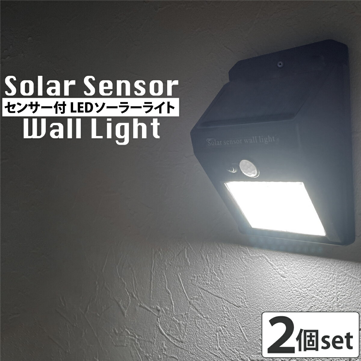20LED ソーラーセンサーライト 2個セット led ソーラー充電式 IP65 LED20灯 LEDライト 人感 明暗 センサー 防犯 防災 ウォールライト 太陽光
