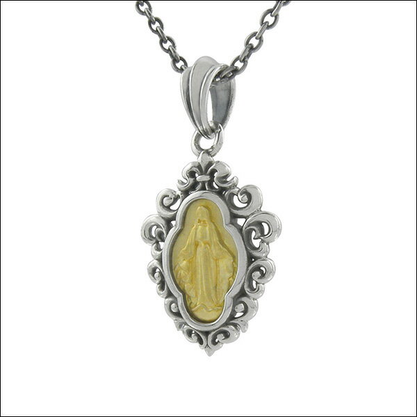 メンズ レディース シルバーアクセサリーブランド「 ARTEMISKINGS ( アルテミスキングス ) 」ゴシックな唐草模様のフレームに覆われた真鍮製のマリアがアンティークな雰囲気のペンダントトップ。
